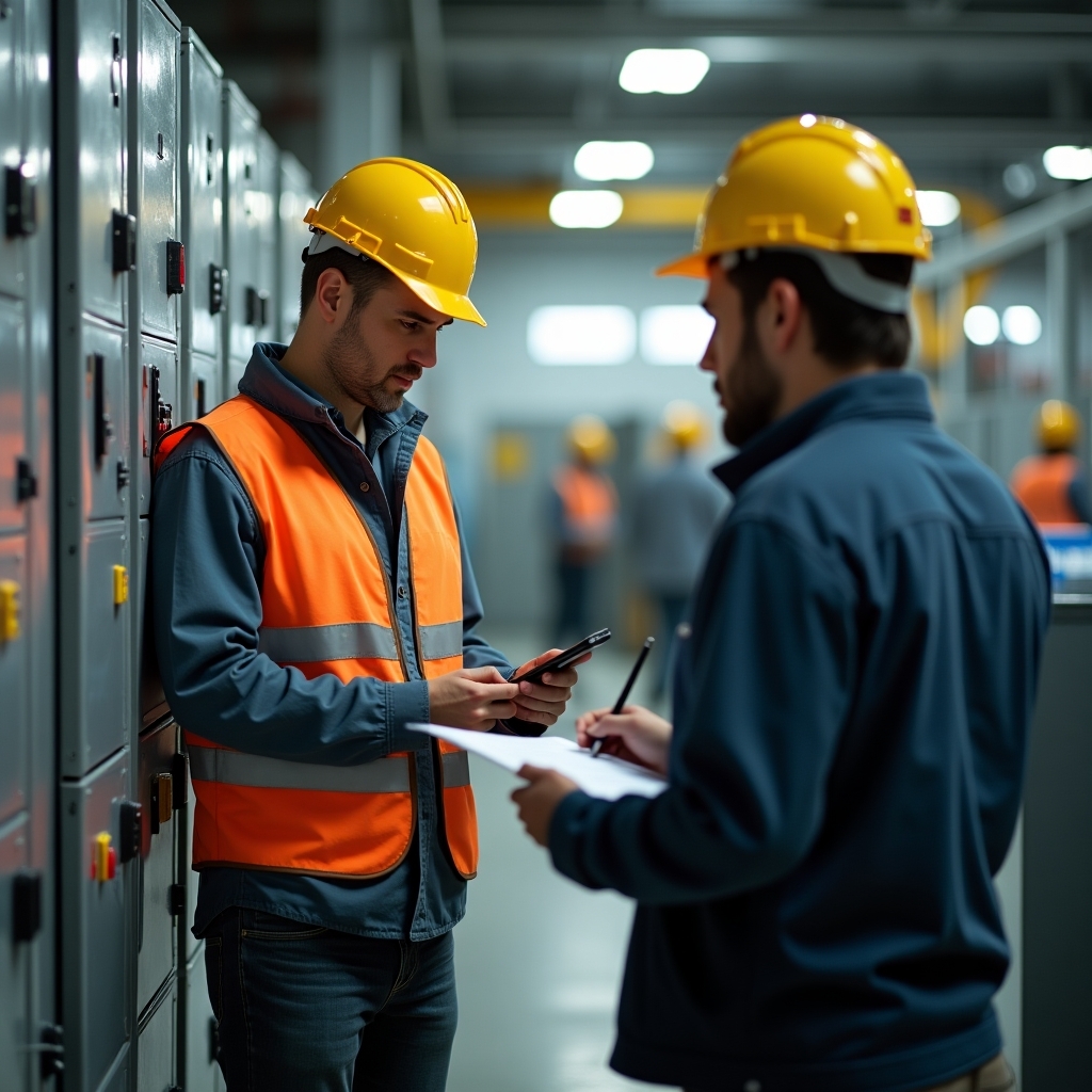 Focus on the health and well-being of personnel working with electrical systems. Covers ergonomics, personal protective equipment (PPE), and workplace safety compliance.
